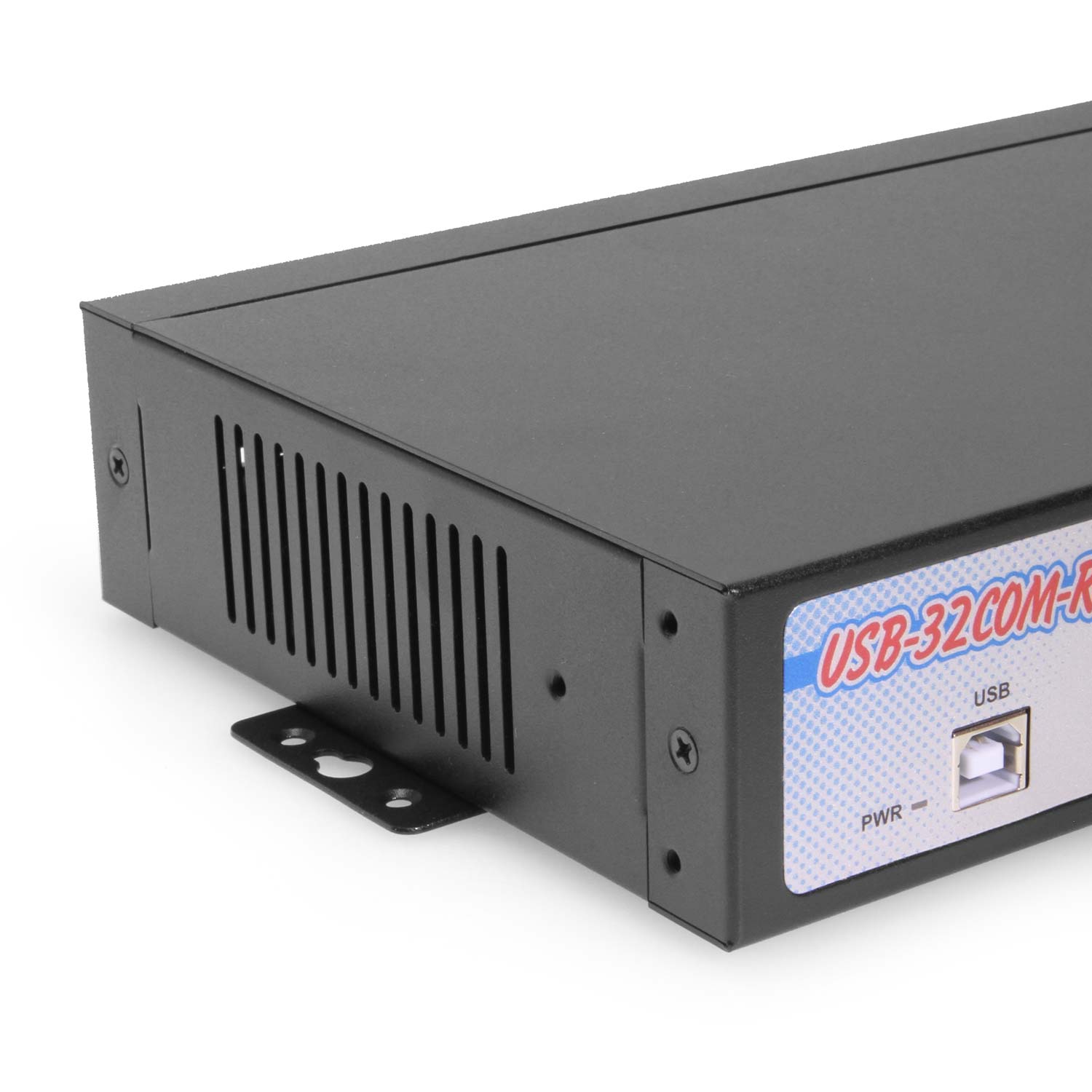 The USB-32COM-RM USB to 32 Port RS-232 Serial Adapter is designed for industrial applications and harsh environments making serial port connections easier. The USB-32COM-RM is a rack mountable industrial USB to 32 Port RS-232 Serial adapter that allows you to add thirty two RS-232 serial ports by connecting to a single USB host port.