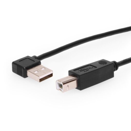 ARBS Series Low Profile Right Angle USB 2.0 Cable, Black 1, 2 and 3ft, USB Type A Male to USB Type B Male Device Cable. Foil and Braid Flexible 28/28AWG USB Shielded High Speed Cable 2.0 Revision 28AWG/1P+28AWG/2C AWM 2725 80c 30V VW-1 E156135 RoHS Standard USB A to B Cable for Connecting USB Devices to USB Computers.