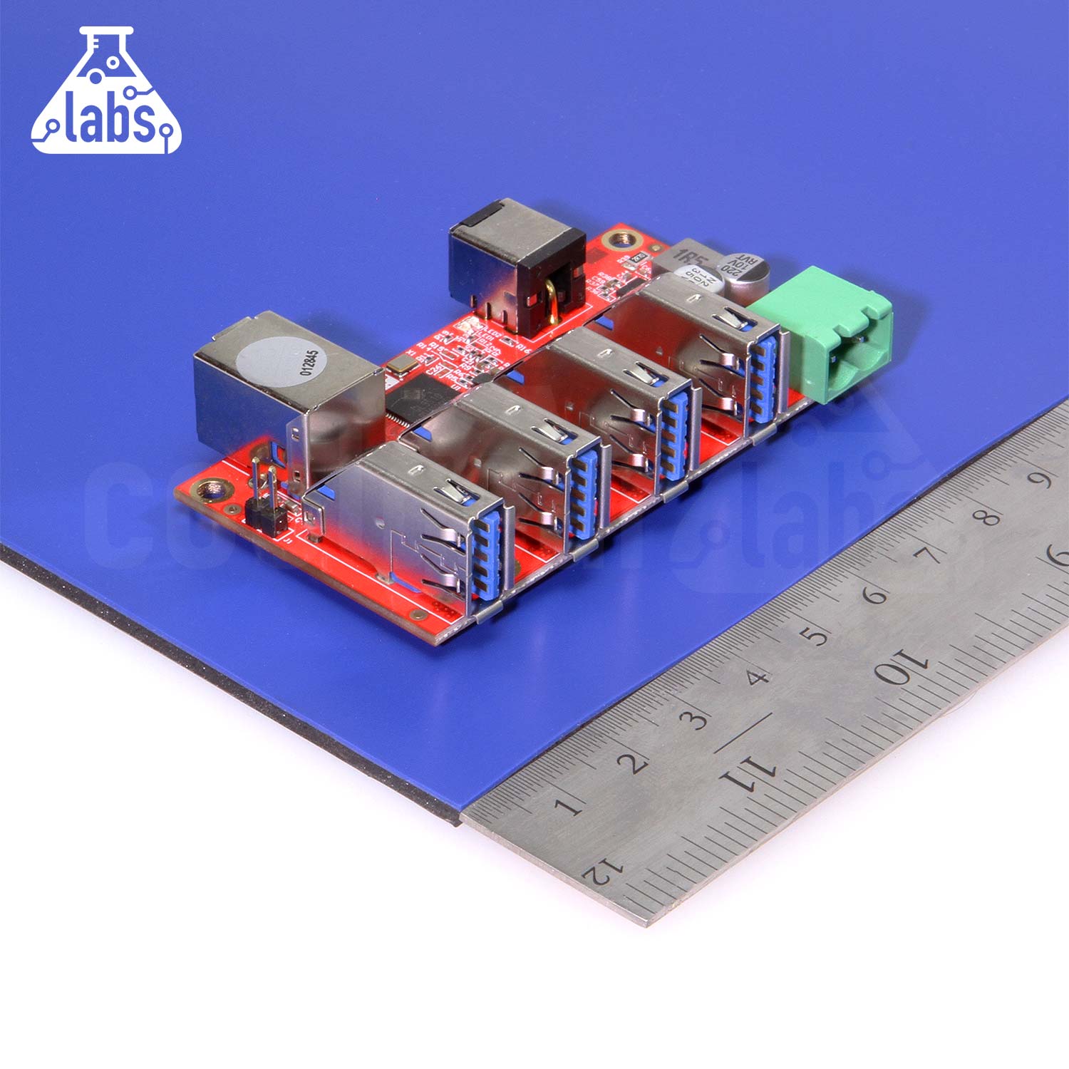 USB 3.2 Gen 1 USB hub board with ESD and surge protection. The Coolgear CGL-3510X4AX1Bv01-DEV features a variable voltage input range of 8~26V DC (self or bus powered), USB 3.2 Gen 1 hub circuit board for incorporating into equipment, assemblies, or a custom enclosure. Supporting 2.4 per port output current.