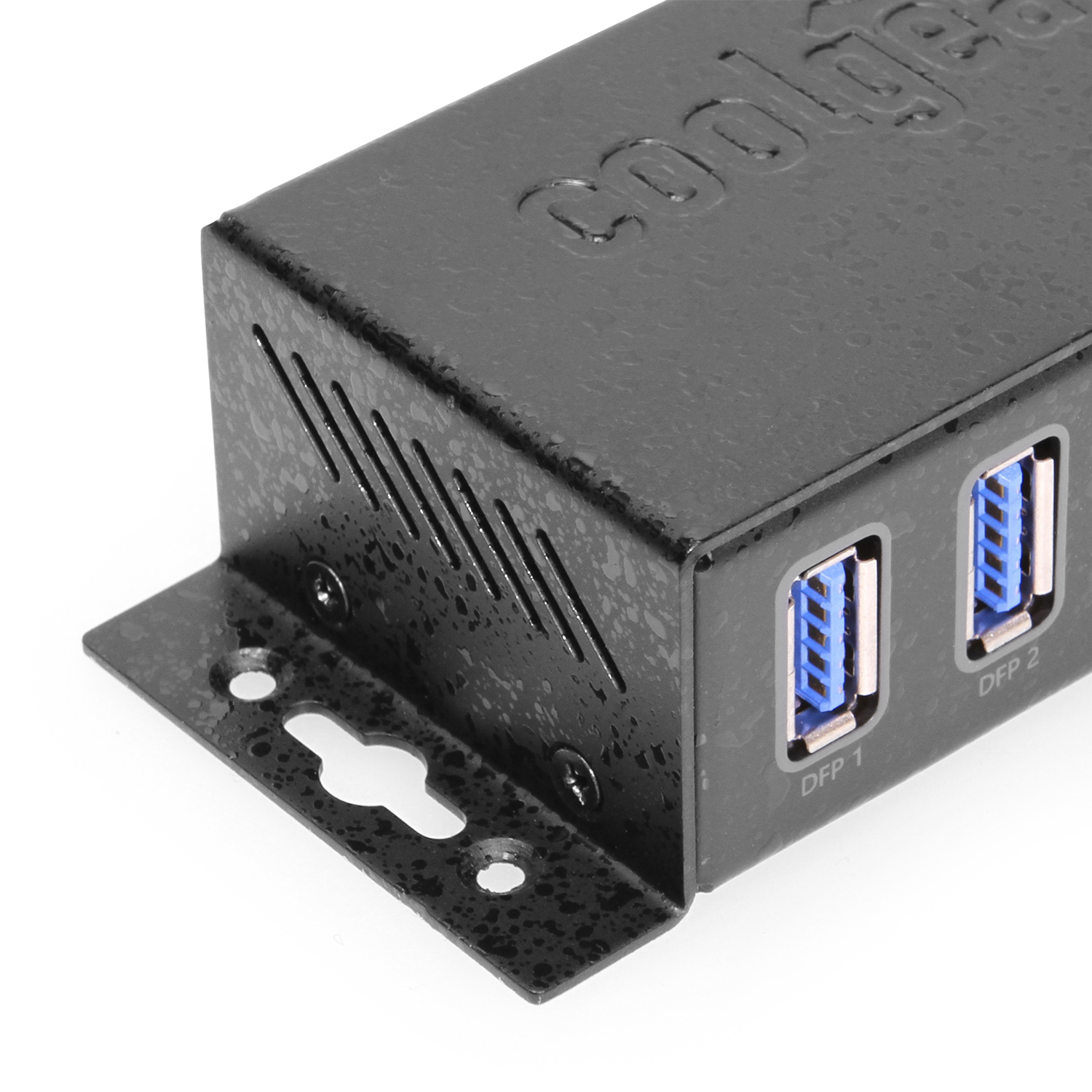 USB 3.2 Gen 1powered hub with industrial-grade chassis and surface mounting flanges. The CG-U3MINI4P-BPH is a 5V DC input, generation 1 USB 3.2 hub with ESD and Surge protection. This USB 3.2 Gen 1 Hub will support fast charging for Apple and Samsung devices. Each port is protected individually to help keep your peripherals safe. The USB USB 3.2 Gen 1 Hub uses a GL 3510 chip, each port is on an individual circuit to maintain high current and protection. The GL3510 Hub controller chip features native fast-charging and complies with USB-IF battery charging specification rev1.2.